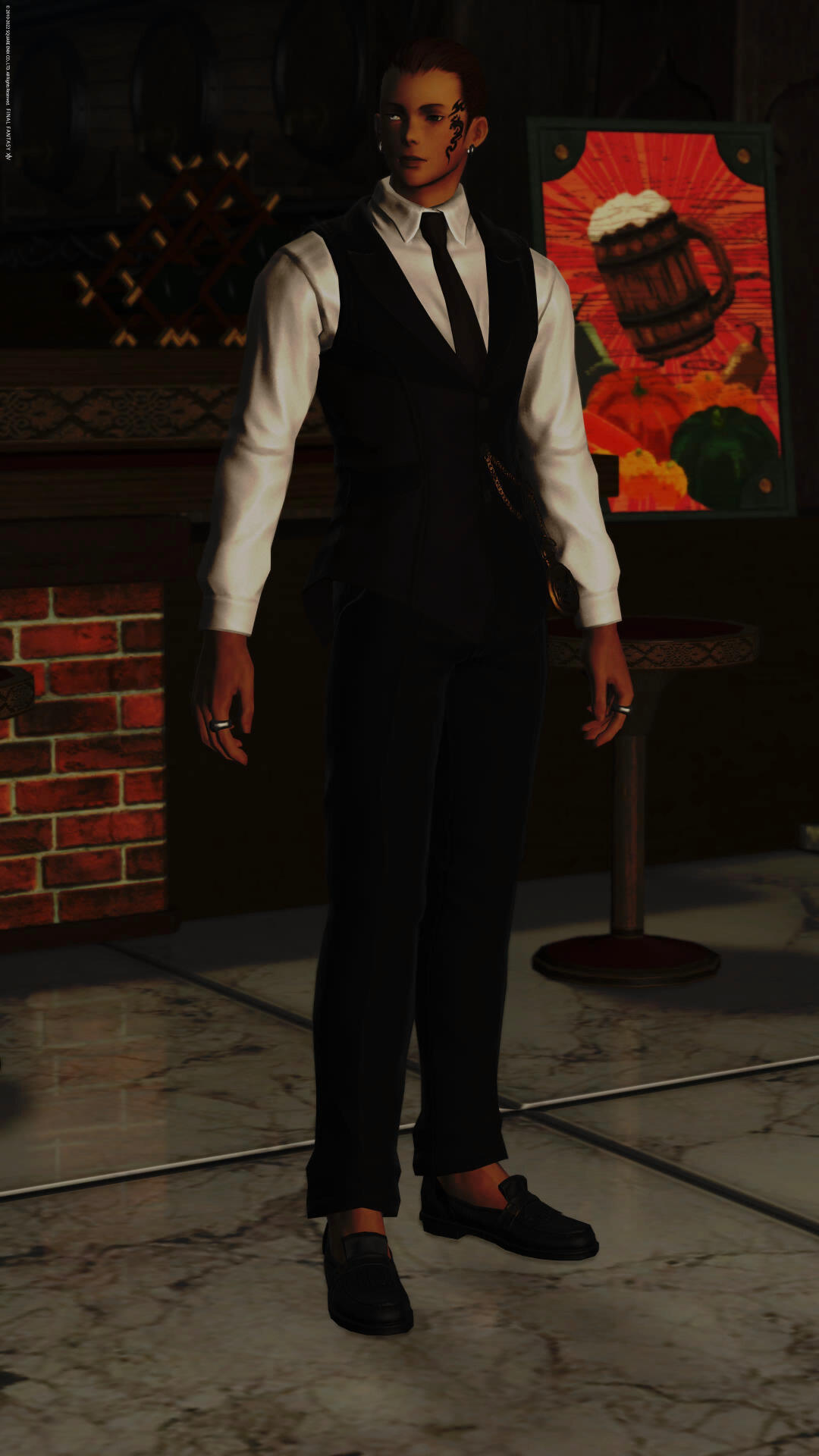 - Valentione Waistcoat: Jet Black/Black- Valentione Slacks: Jet Black/Black- Dress shoe(Optional ): Black